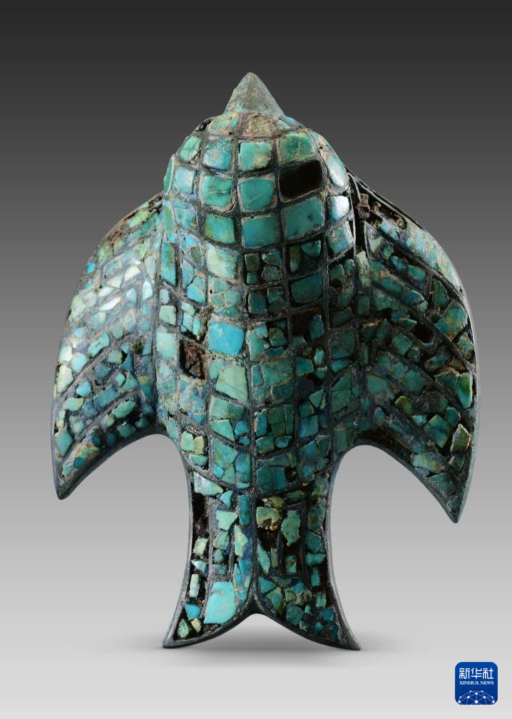 陕西清涧后刘家塔墓地出土的镶绿松石铜饰(资料照片)。