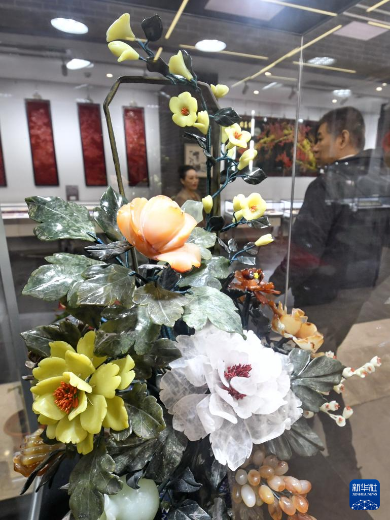 观众在参观玉雕大师张铁成的作品(12月19日摄)。