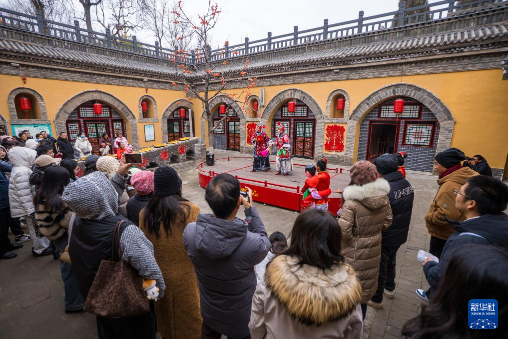 12月21日,游客在河南省三门峡市陕州区张汴乡北营村地坑院观看民俗表演。