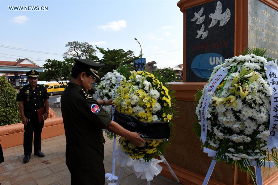 KAMPONG CHAM, Cambodia, March 28 (Xinhua) -- As the annual Tomb-Sweeping Day approaches, Cambodia and China on Tuesday jointly commemorated two Chinese UN peacekeepers who were killed in a blast here 24 years ago.