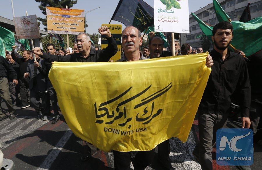 File Photo: Iranians take part in a protest against U.S. President Donald Trump's speech at the United Nations general assembly, in Tehran on Sept. 22, 2017. (Xinhua/AFP)
