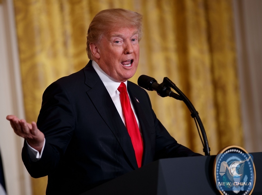 U.S. President Donald Trump speaks during a joint press conference with Norwegian Prime Minister Erna Solberg (not seen) at the White House in Washington D.C., the United States, on Jan. 10, 2018. (Xinhua/Ting Shen)