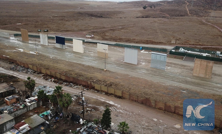 File photo taken on Jan. 10, 2018 shows the eight border wall prototypes between Mexico and the U.S., Tijuana, Mexico. (Xinhua/Xu Rui)