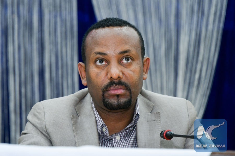 Abiye Ahmed, newly appointed Chairperson of Ethiopia's ruling coalition, Ethiopian People's Revolutionary Democratic Front (EPRDF), is seen during a meeting in Addis Ababa, capital of Ethiopia, March 28, 2018. (Xinhua/Michael Tewelde)