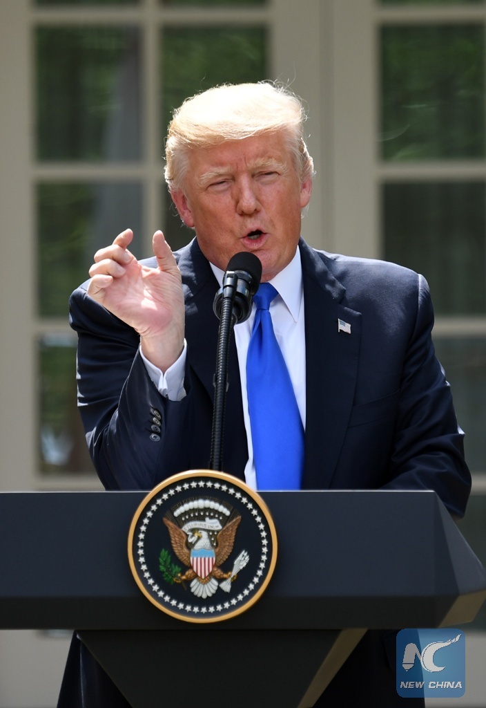 File Photo: U.S. President Donald Trump speaks at a joint press conference with visiting Lebanese Prime Minister Saad Hariri (not in the picture) at the White House in Washington D.C., the United States, on July 25, 2017. U.S. President Donald Trump said at the joint press conference Tuesday that he won't let Syrian President Bashar al-Assad get away with the "horrible" actions he has done. (Xinhua/Yin Bogu)