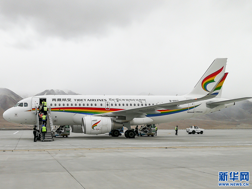 An airplane of the Tibet Airlines is seen at the Ali Kunsha Airport, Ali Prefecture, southwest China's Tibet Autonomous Region, May 8, 2018. (Xinhuanet/Zhang Chen)