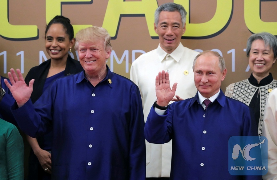 File Photo: U.S. President Donald Trump and Russian President Vladimir Putin take part in a family photo at the APEC summit in Danang, Vietnam, Nov. 10, 2017. (Xinhua/REUTERS)