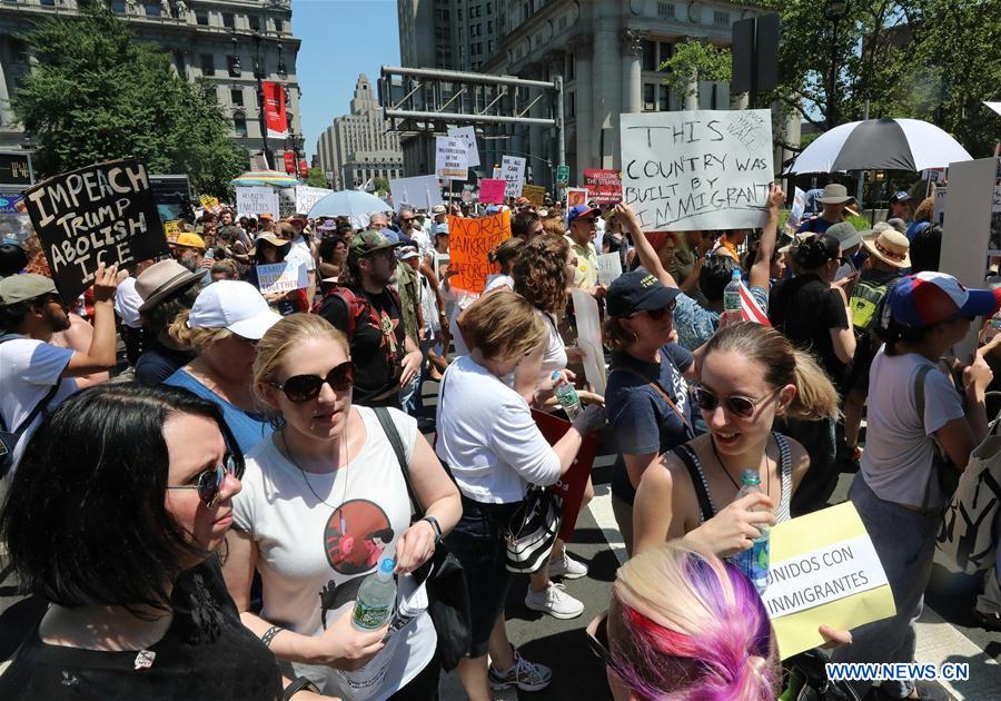WASHINGTON, June 30 (Xinhua) -- From coast to coast, in the rain or under the burning sun, tens of thousands of Americans marched and rallied across the country to protest the Trump administration's "zero tolerance" immigration policy resulting in over 2,000 children separated from their families who crossed the border illegally.
