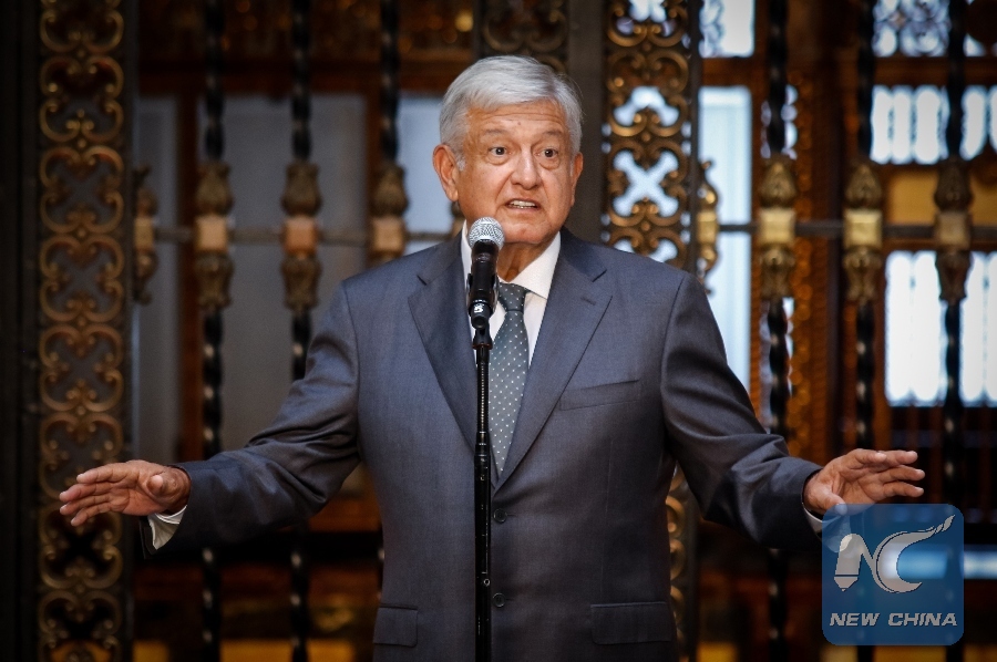 Mexico's president-elect Andres Manuel Lopez Obrador delivers a speech after his meeting with Mexican President Enrique Pena Nieto, in Mexico City, capital of Mexico, July 3, 2018. (Xinhua/Franciso Canedo)
