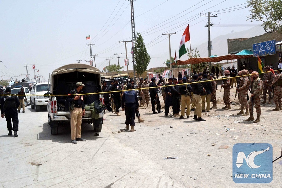ISLAMABAD, July 25 (Xinhua) -- At least 29 people, including three policemen, were killed and over 40 others injured in a suicide attack near a polling station in Quetta city of Pakistan's southwest Balochistan province on Wednesday, according to a hospital official Waseem Baig.