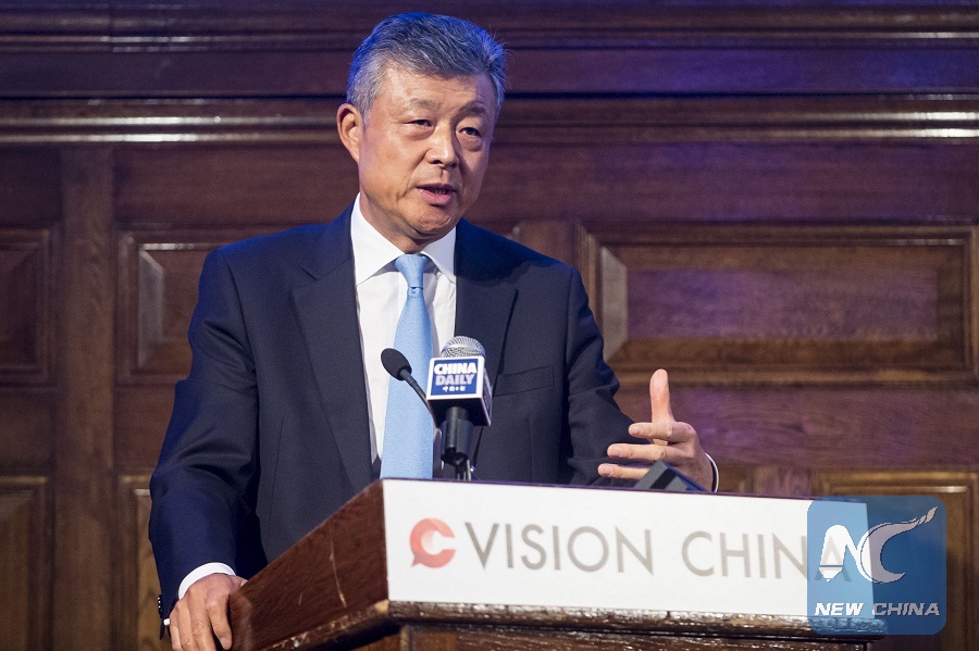 Chinese Ambassador to Britain Liu Xiaoming speaks during a forum themed "40 Years on: China and the World" in London, Britain, on Sept. 13, 2018. (Xinhua/Stephen Chung)