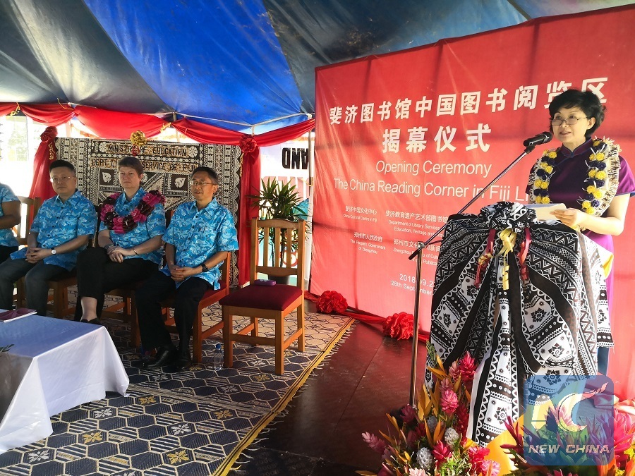 SUVA, Sept. 28 (Xinhua) -- China Reading Corner opened here on Friday in the Fiji National Library to help strengthen the cultural exchanges between China and Fiji.