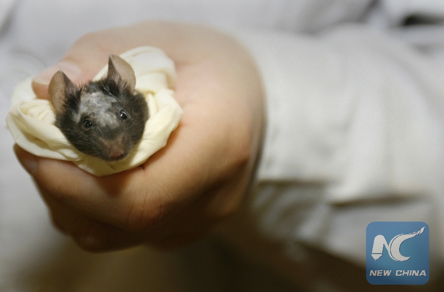 This file photo taken on May 26, 2006 shows a laboratory technician holding a lab mouse before operating on it as part of a stem cell research program at the National Institute of Biological Sciences in Zhongguancun Science Park in Beijing. (Xinhua/AFP)