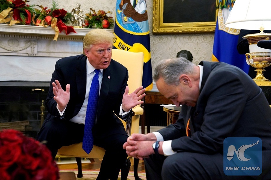 WASHINGTON, Dec. 22 (Xinhua) -- U.S. President Donald Trump said Saturday that he was negotiating with the Democrats to end a partial government shutdown, but "it could be a long stay" due to continued discrepancy on his long-time demand for a border wall.