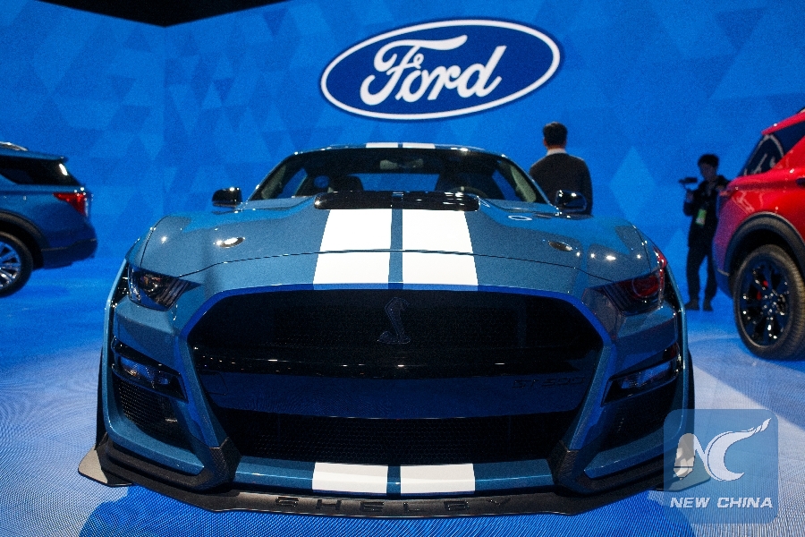 Ford unveils the Mustang Shelby GT500 during North American International Auto Show in Detroit, Michigan, United States on Jan. 14, 2019. (Xinhua/Elaine Cromie)