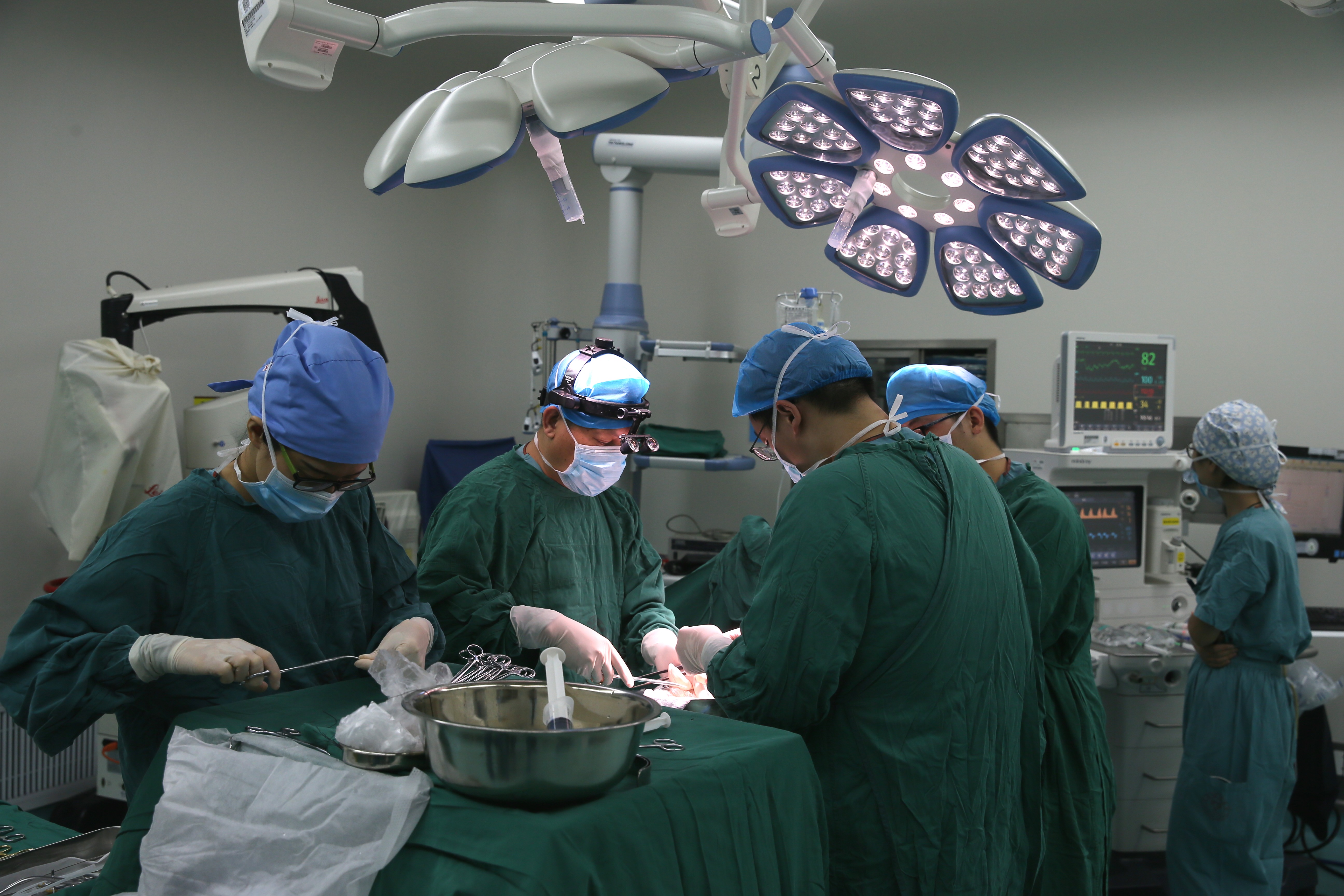 Medical staff conduct a kidney transplantation surgery for an organ recipient in Hefei, capital of east China's Anhui Province, Aug. 22, 2018. (Xinhua/Huang Xin)