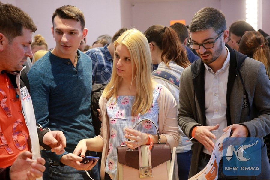 Citizens are testing smartphones during the Grand Opening of the first Xiaomi shop in Romanian in one of the trendiest malls of the capital, on April 20, 2019 in Bucharest, Romania.(Xinhua/Gabriel Petrescu)