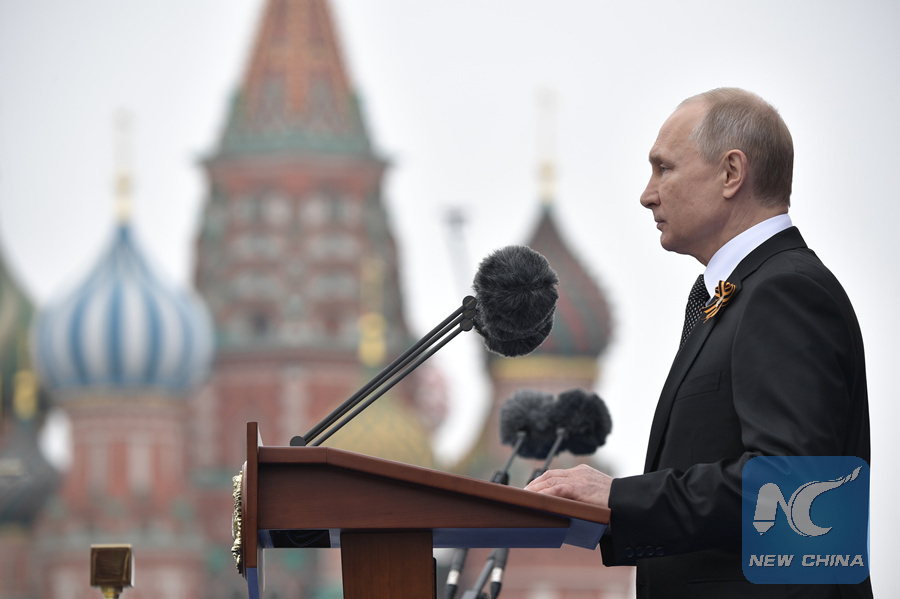 MOSCOW, May 9 (Xinhua) -- Russia will continue enhancing its defense capabilities and remains open to cooperation with other countries in fighting terrorism, neo-Nazism and extremism, Russian President Vladimir Putin said Thursday.