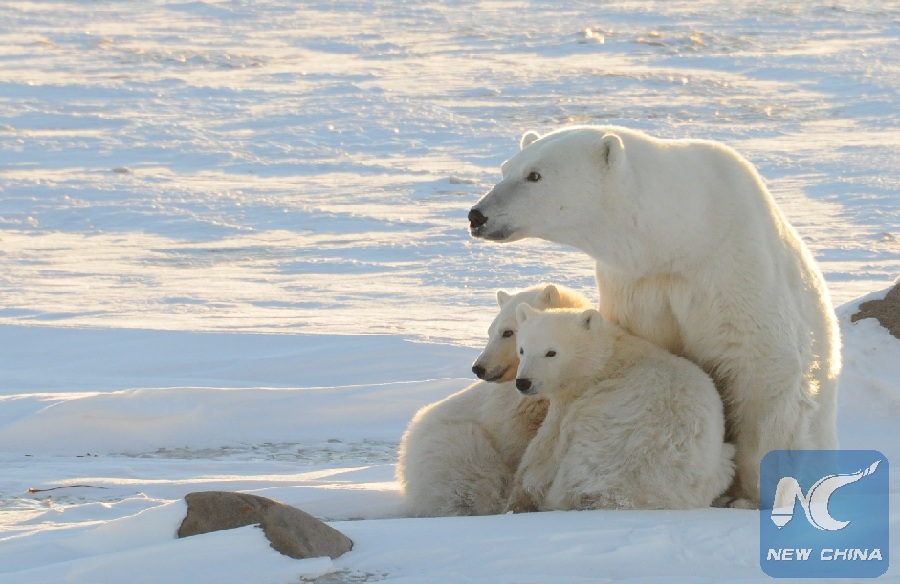 A World Wildlife Fund photograph taken along the western shore of Hudson Bay shows a female polar bear with two cubs near Churchill Canada. (Xinhua/Reuters/Geoff York/World Wildlife Fund/Handout)
