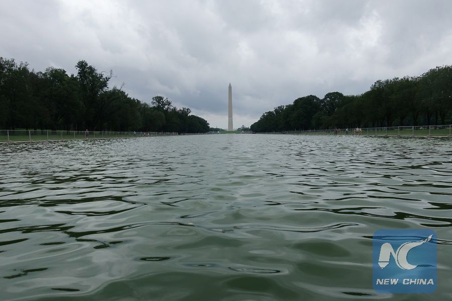 Photo taken on July 8, 2019 shows the Washington Monument after heavy rain in Washington D.C., the United States. (Xinhua/Liu Jie)