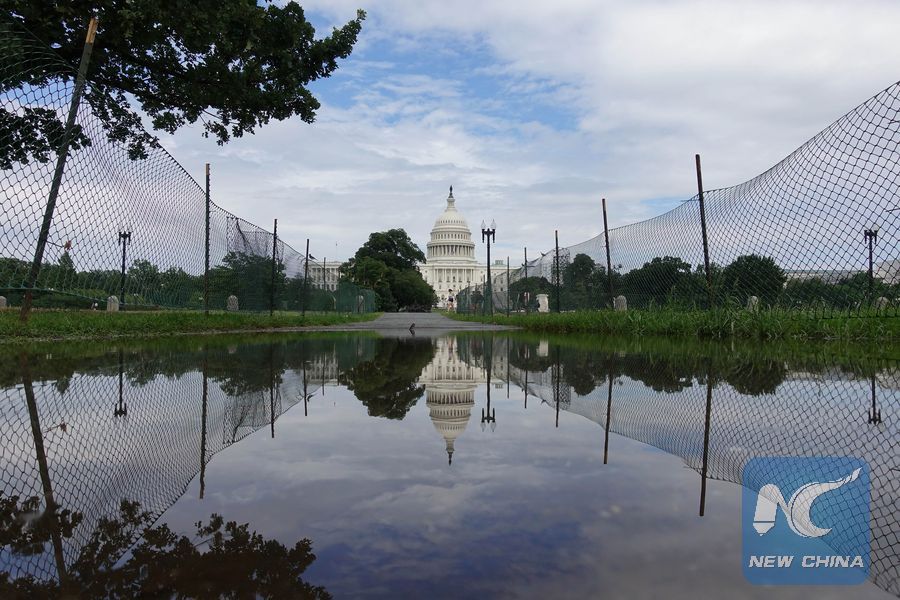 The Capitol Hill is seen after heavy rain in Washington D.C., the United States, on July 8, 2019. (Xinhua/Liu Jie)