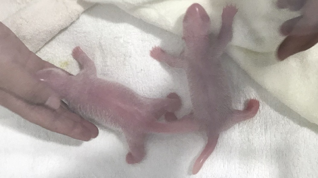 The male cub was born at 12:52 p.m. weighing 122 grams and its 170-gram twin sister was born at 1:28 p.m. at the Shaanxi Rare Wild Animals Rescue and Breeding Research Center, the center said.