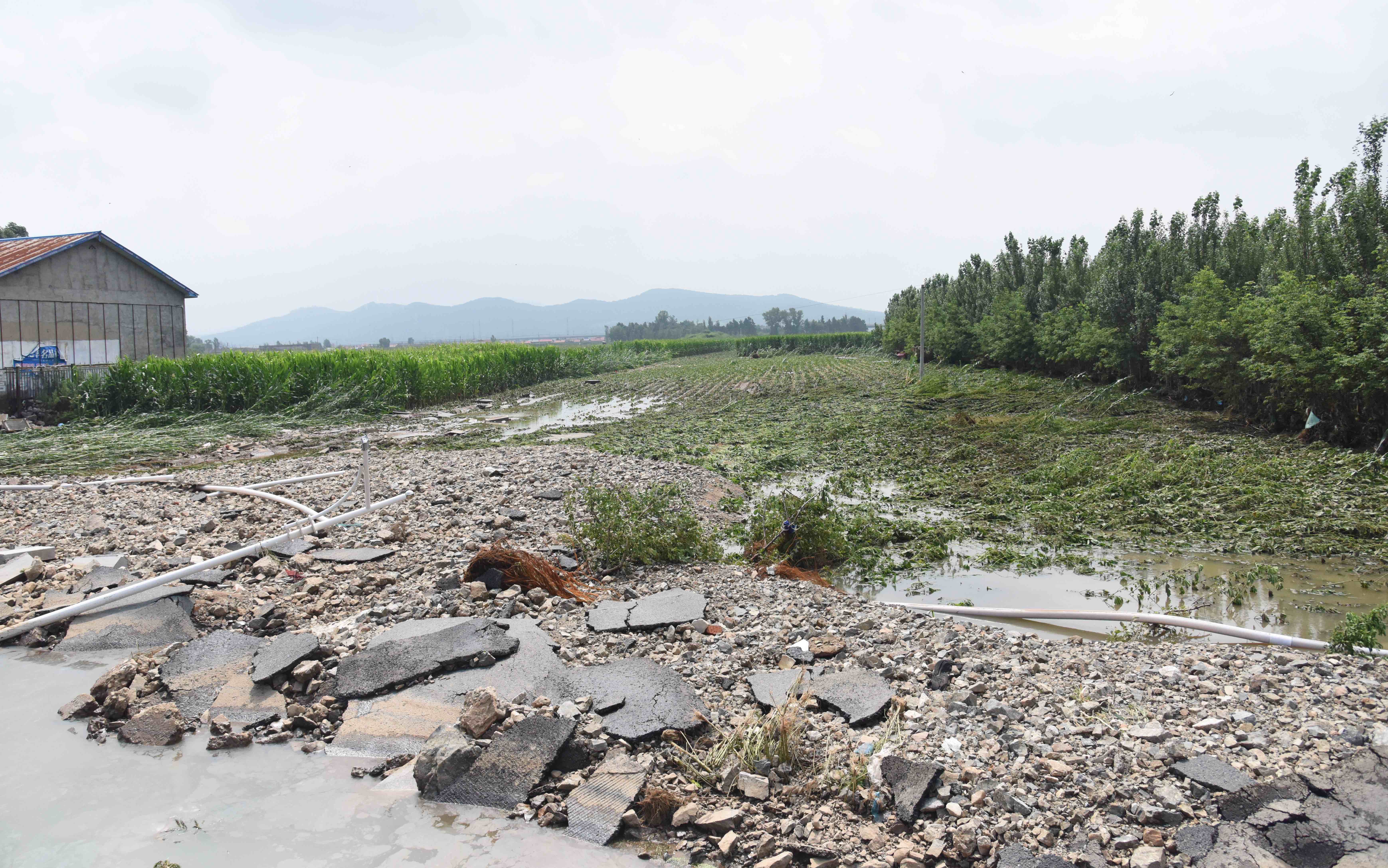 Photo taken on July 31 shows farmland after floods in Pingshan Township, Harbin city, Heilongjiang Province, northeast China. (Xinhua/Qiang Yong)