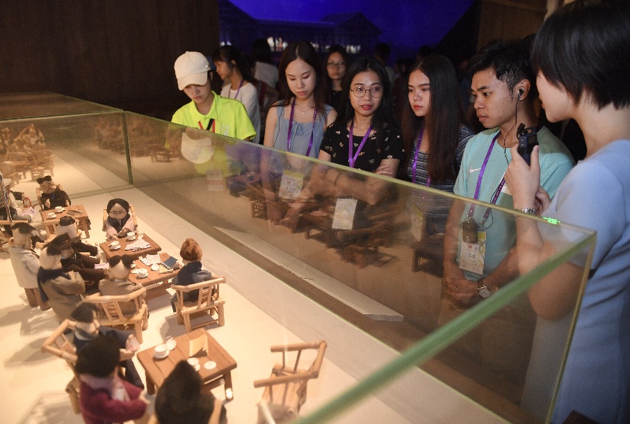 Young people from south China's Hong Kong visit the Chengdu Museum in Chengdu, southwest China's Sichuan Province, Aug. 24, 2019. (Xinhua/Liu Kun)