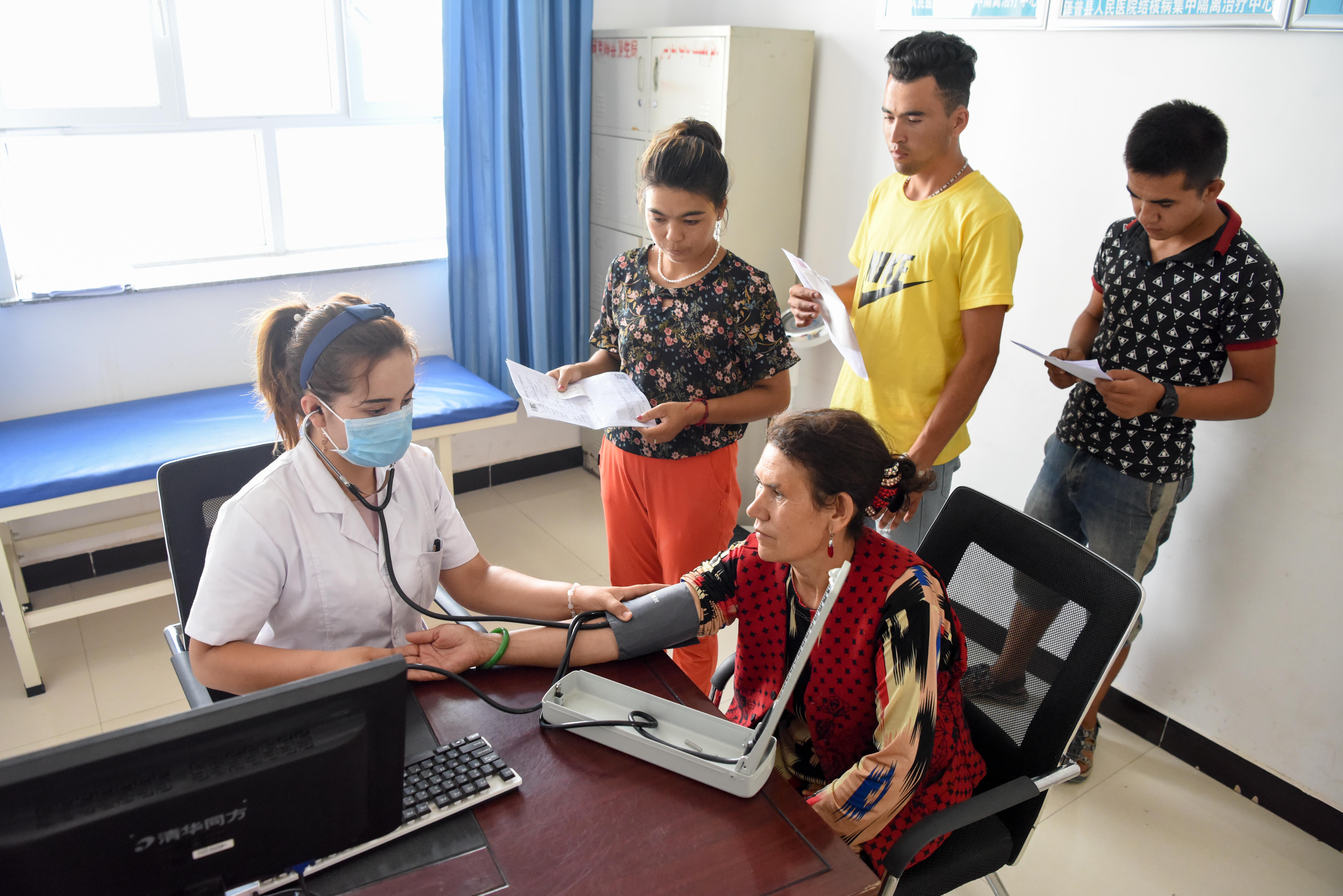 Residents receive free medical check in Tongan Township of Zepu County, Kashgar, northwest China's Xinjiang Uygur Autonomous Region, Aug. 16, 2019. (Xinhua/Ding Lei)