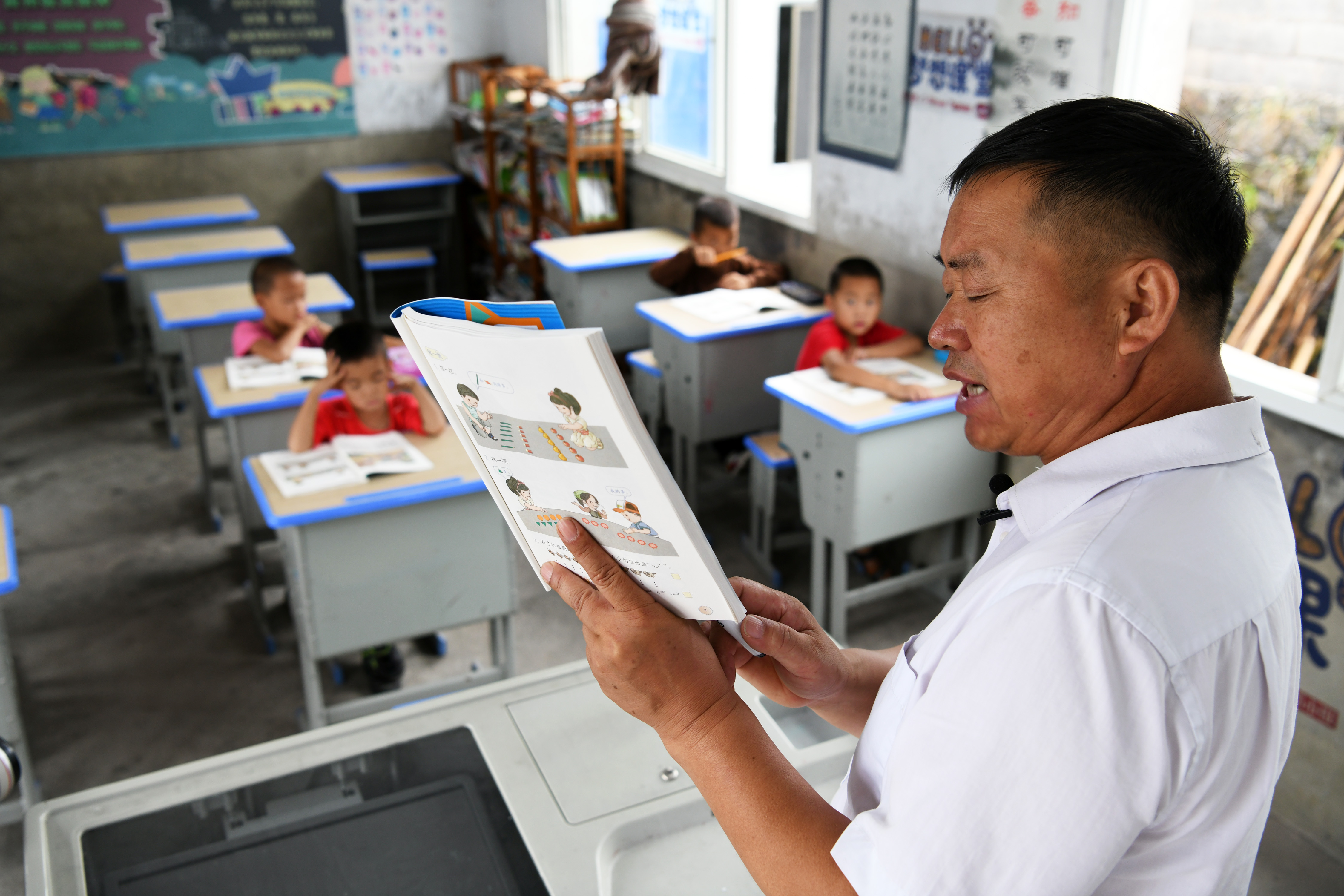 As the only school teacher in Gugang Primary School in SW China's Guizhou, Wu Guoxian has taught about 800 students over the past 36 years. This semester, he will greet six preschool students and four first-graders.