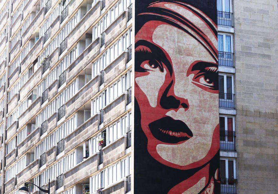 People pass by a building with mural paintings in Paris, France. (Xinhua/Gao Jing)