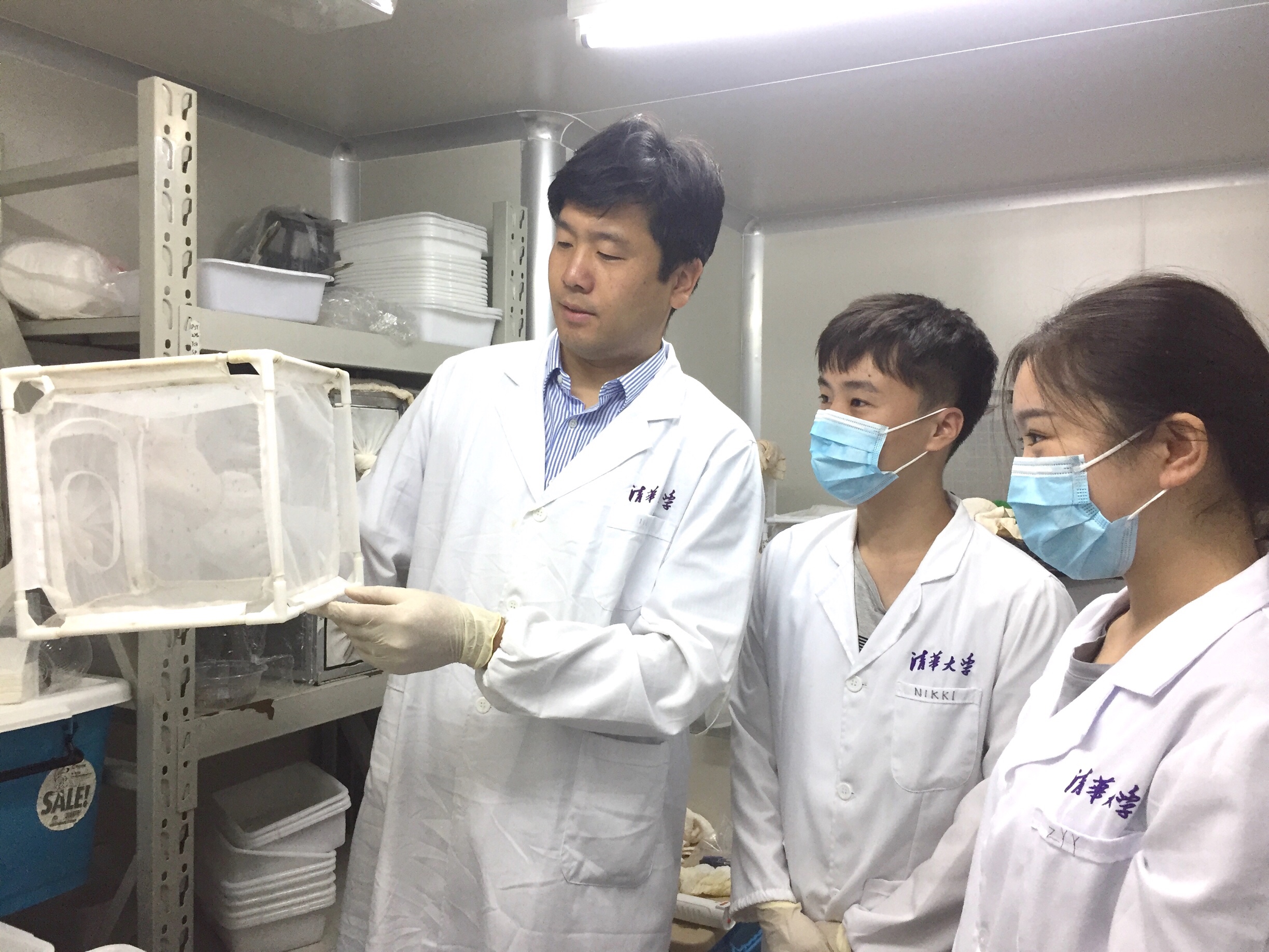 Researchers from Tsinghua University experiment on ways to control dengue virus. (Photo provided to Xinhua)