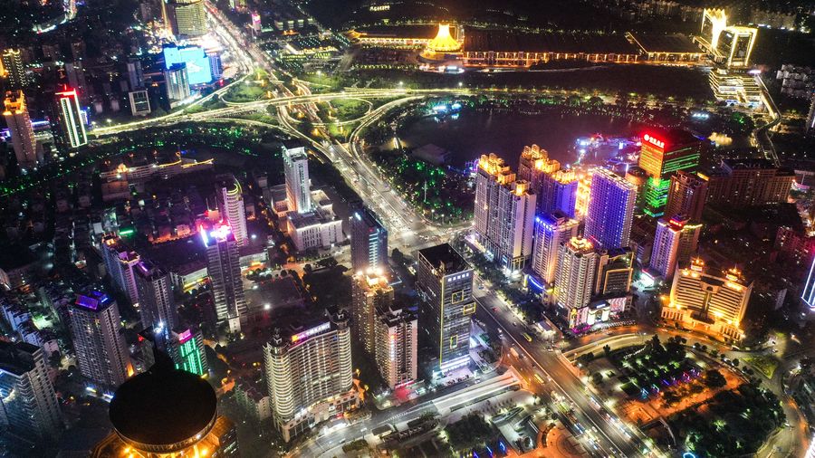 Photo taken on Sept. 20, 2019 shows the night view of Langdong District in Nanning, capital city of south China's Guangxi Zhuang Autonomous Region. (Xinhua)