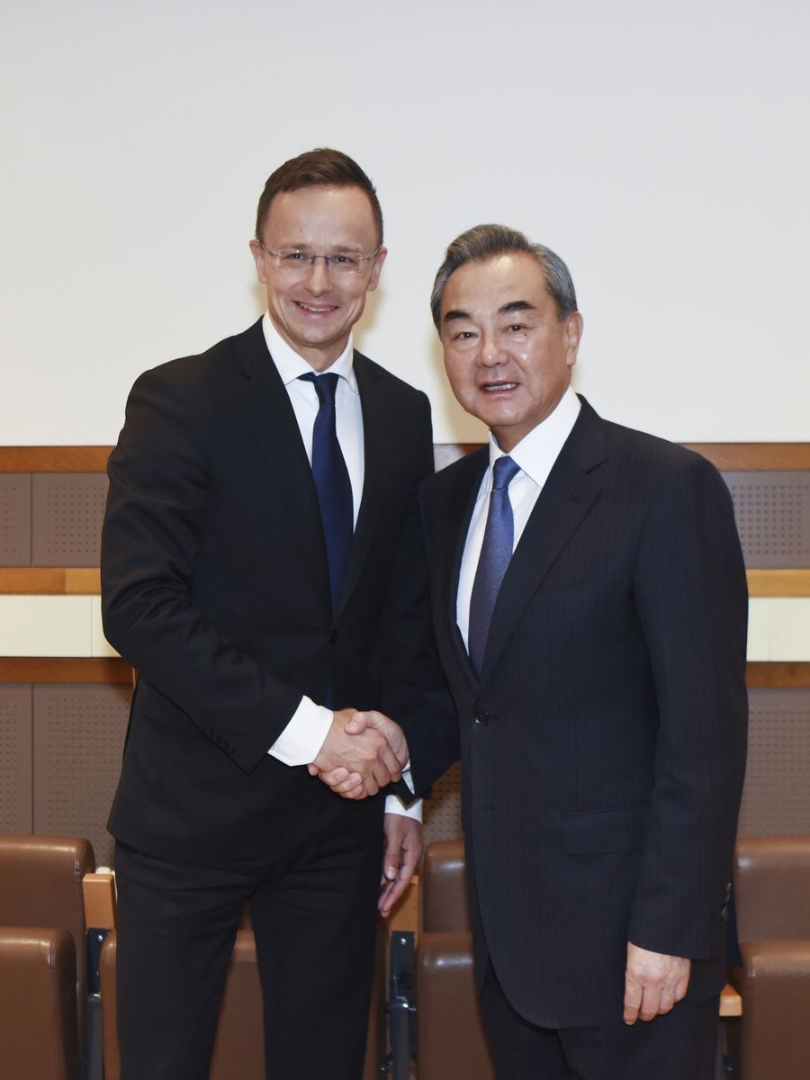UNITED NATIONS, Sept. 24 (Xinhua) -- Chinese State Councilor and Foreign Minister Wang Yi and Hungarian Foreign Minister Peter Szijjarto agreed on Monday to advance all-round cooperation in bilateral ties and deepen mutual trust.