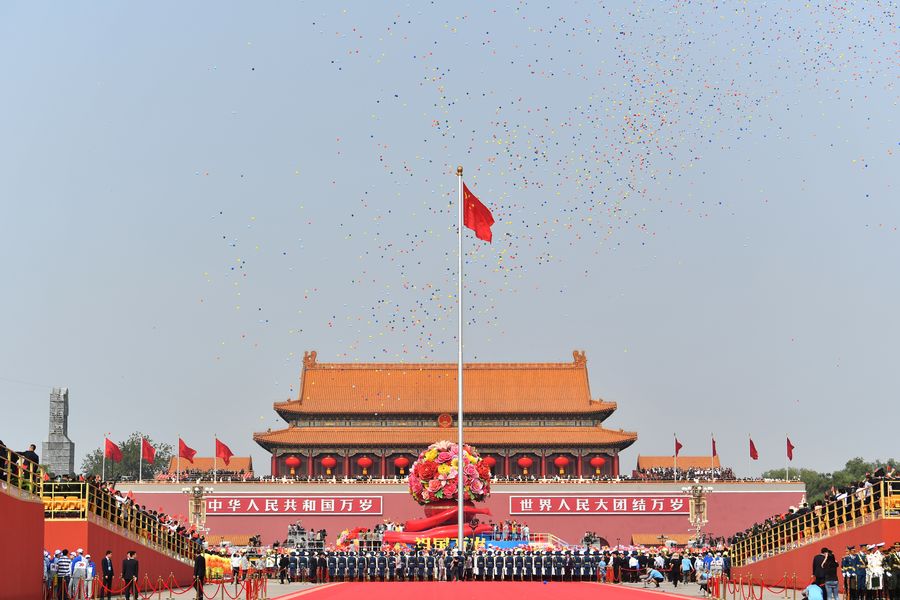 Beijing, Oct. 2, 2019(Xinhua)--Tian'anmen Square was turned into a sea of joy Tuesday as Chinese celebrated the spectacular rise over the past 70 years and vowed to march on toward national rejuvenation.