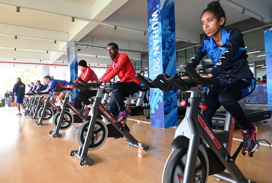 Athletes train at the athletes' village of the 7th International Military Sports Council (CISM) Military World Games in Wuhan, capital of central China's Hubei Province, Oct. 16, 2019. (Xinhua/Chen Yehua)