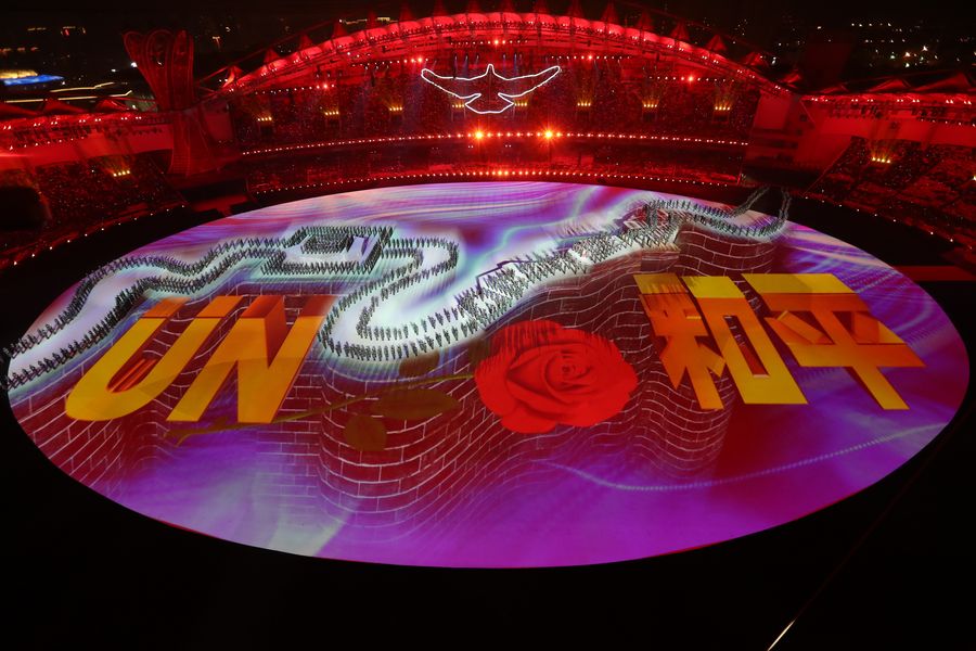 Afterwards, those inside the stadium were treated to a 50-minute extravaganza titled the "Torch of Peace," which involved thousands of performers, large-scale projection and LED technologies, and a football pitch-turned three-dimensional stage.