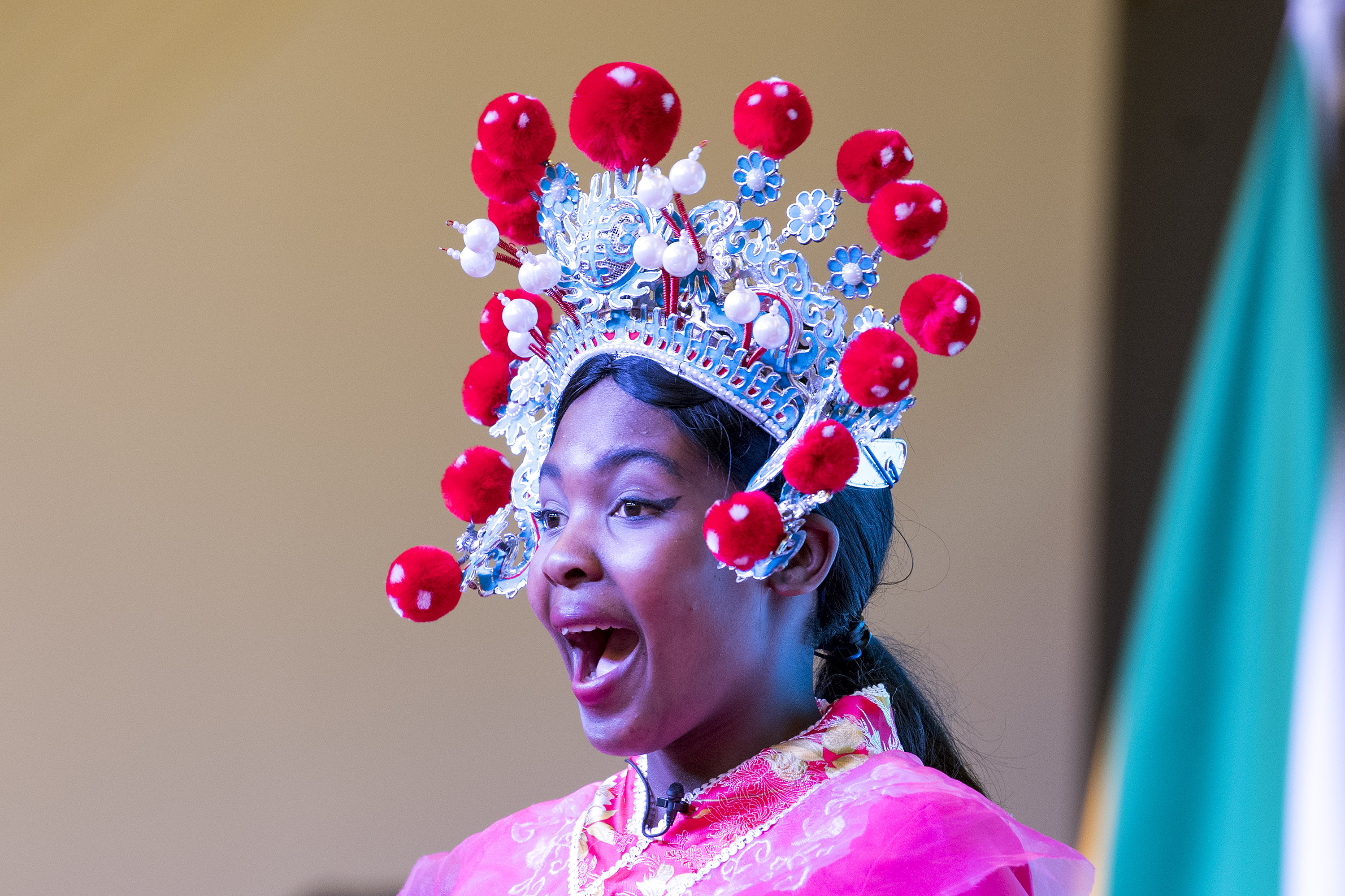A student performs Peking Opera at the Chinese Language Teaching in South Africa Gala Night in Pretoria, South Africa, Aug. 5, 2019. (Xinhua/Chen Cheng)