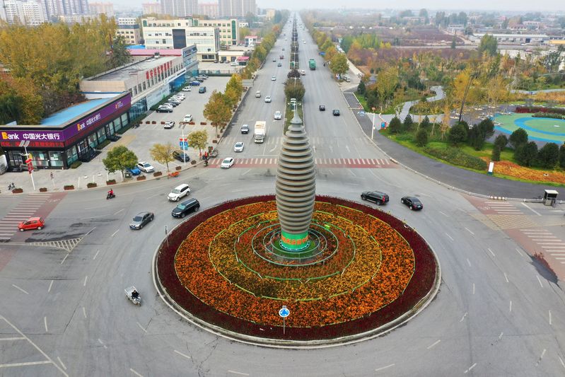 Aerial photo taken on Nov. 6, 2019 shows the autumn scenery in Xiongan New Area, north China's Hebei Province. (Xinhua/Xing Guangli)