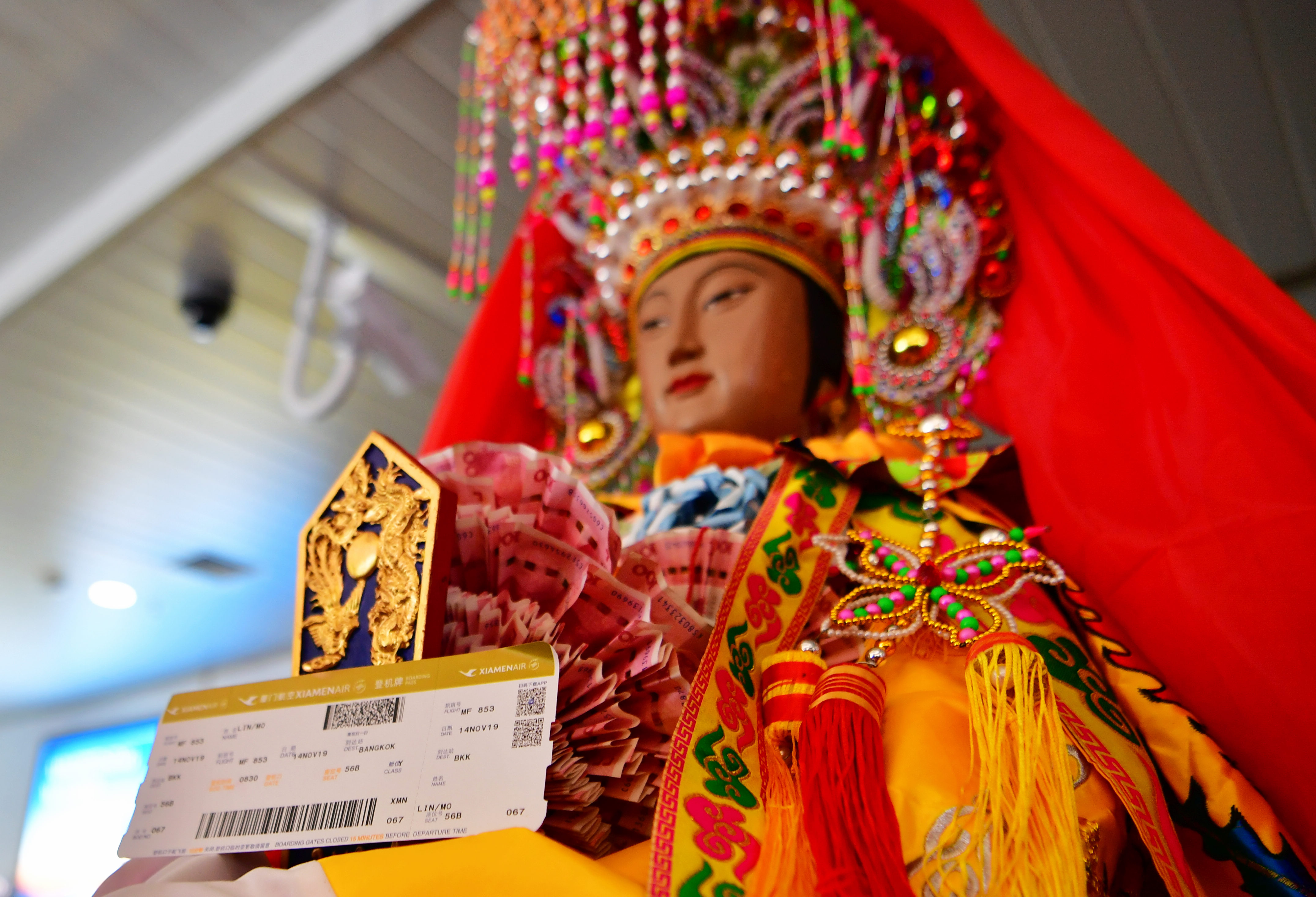 Amid camera flash light and the gaze by people, a Boeing 787 Dreamliner departed from Xiamen, a coastal city of southeast China's Fujian Province on Thursday morning. Aboard the flight was a special passenger -- a statue of the goddess Mazu, who was on her first trip to Thailand at the invitation of local believers.