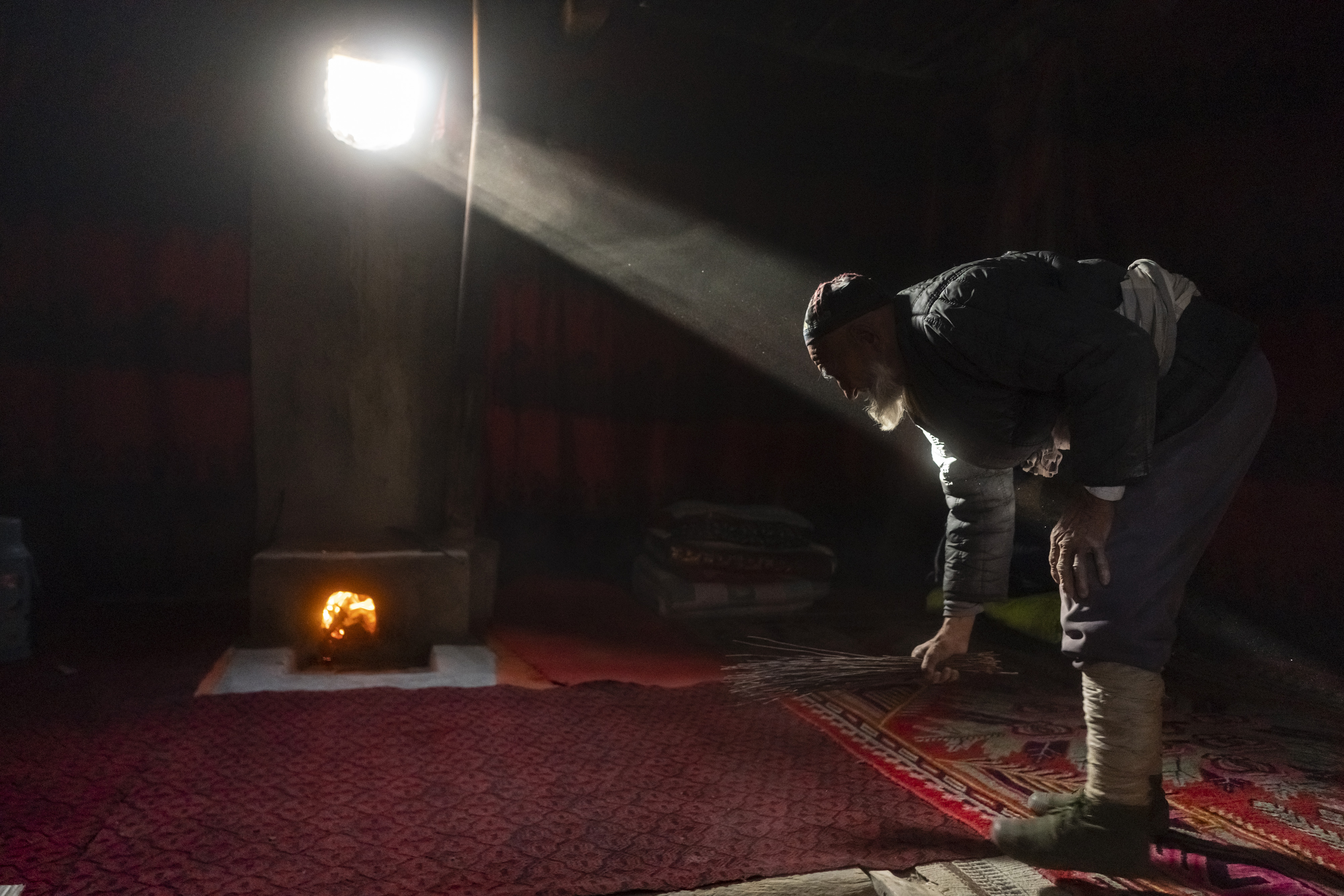 Imin's father cleans the old house in Darya Boyi Town in Yutian County, northwest China's Xinjiang Uygur Autonomous Region, Nov. 16, 2019. Before moving to the new settlement on Nov. 17 and Nov. 18 this year, sheep herder Imin's home was at the heart of the Taklimakan Desert, the second-largest shifting sand desert in the world.