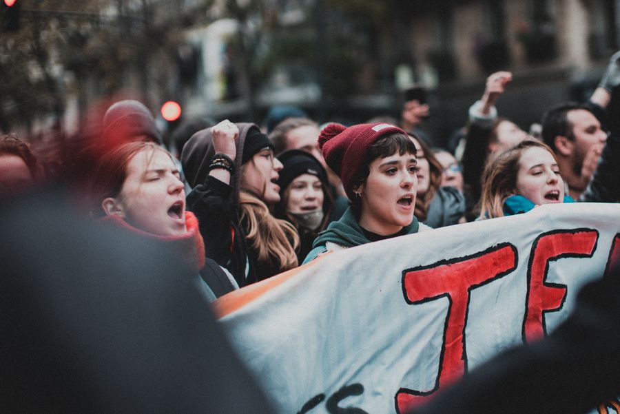 A woman takes part in a demonstration in Paris, France. (Photo by Yu Zhou/Xinhua)