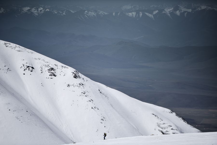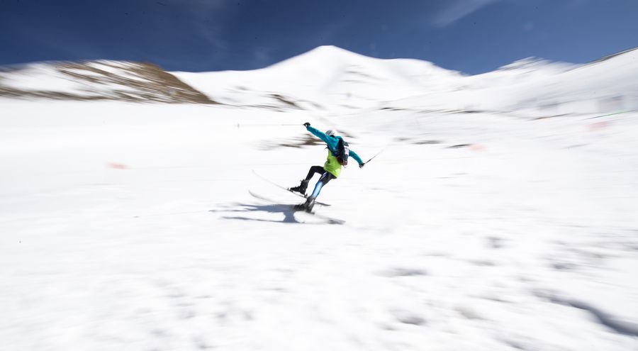 A participant competes during the 2019 world ski mountaineering masters Mt. Gangshika in Menyuan County, northwest China's Qinghai Province, May 24, 2019. (Xinhua/Wu Gang)