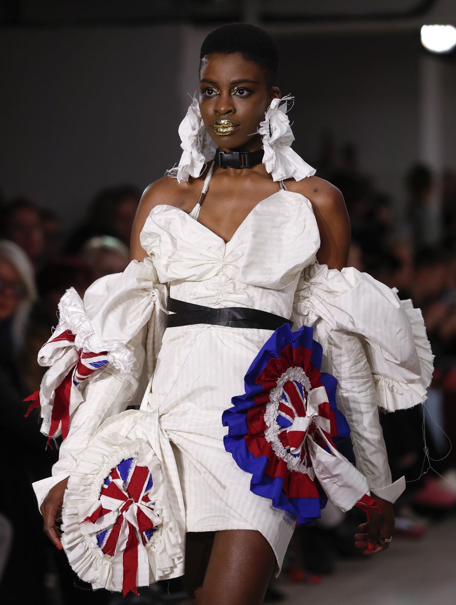 A model walks the runway at On|Off Presents... catwalk show during the London Fashion Week in London, Britain. (Xinhua/Han Yan)