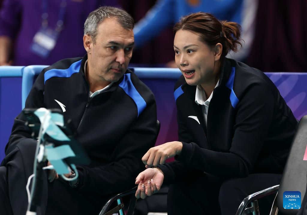 Beijing's head coach Dejan Vulicevic (L) talks with assitant coach Zeng Chunlei before the 5th round match between Beijing and Jiangsu at China Women's Volleyball League 2025-2026 in Beijing, China, Dec. 27, 2025. (Xinhua/Wang Lili)