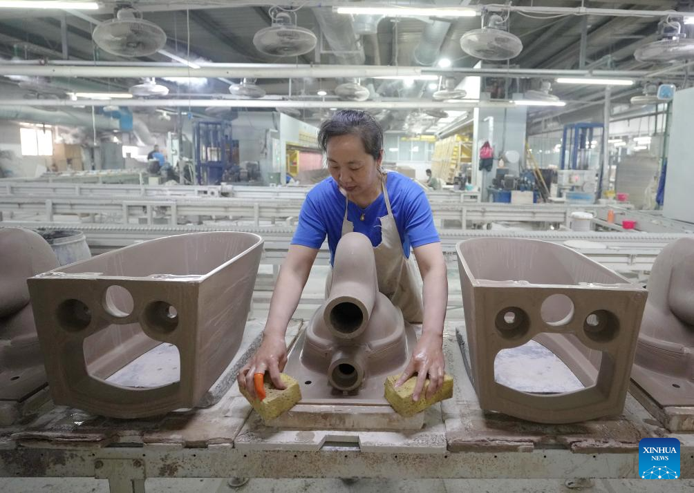 A woman works at a bathroom product manufacturer in Tangshan Port economic development zone in Tangshan, north China's Hebei Province, Dec. 26, 2025. Leveraging its geographical advantages, the economic development zone has developed industries such as high-quality steel, equipment manufacturing, fine chemicals, high-end bathroom product and new energy to boost high-quality economic growth. (Xinhua/Yang Shiyao)