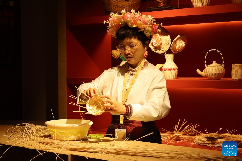 A Chinese folk artist displays traditional handicraft in Riyadh, Saudi Arabia, Dec. 25, 2025. A Saudi-Chinese cultural festival opened this week in Riyadh, capping a year-long initiative aimed at strengthening ties between the two countries through art, technology, and heritage. (Xinhua/Wang Haizhou)