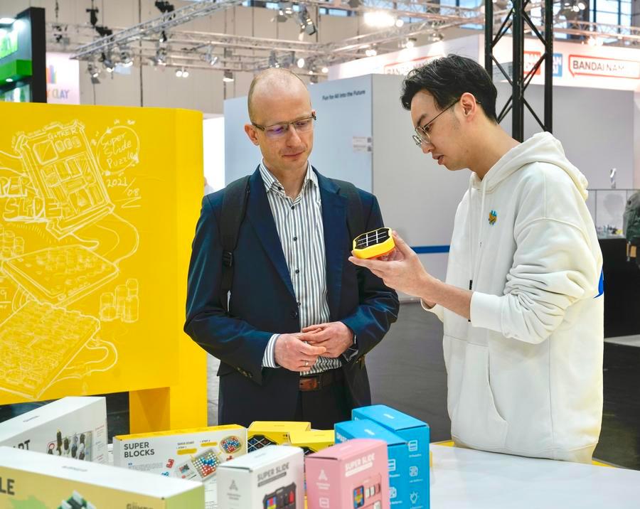 Su Ziming (C), founder of Giiker, discusses the company's smart educational toy products with employees in Shunde, Foshan City, south China's Guangdong Province, Oct. 29, 2025. (Xinhua/Mao Siqian)Staff members of Giiker discuss the packaging of products in Shunde, Foshan City, south China's Guangdong Province, Oct. 29, 2025. (Xinhua/Mao Siqian)This photo taken in January 2024 shows a staff member (R) introducing a toy produced by Giiker to a client at an international toy fair in Nuremberg, Germany. (Xinhua)A R&D staff member tests an intelligent blocks toy at the headquarters of Giiker in Shunde, Foshan City, south China's Guangdong Province, Oct. 29, 2025. (Xinhua/Mao Siqian)A worker works on the production line of Giiker in Shunde, Foshan City, south China's Guangdong Province, Oct. 29, 2025. (Xinhua/Mao Siqian)A staff member of Giiker introduces an intelligent blocks toy via livestreaming in Shunde, Foshan City, south China's Guangdong Province, Oct. 29, 2025. (Xinhua/Mao Siqian)Children play an intelligent military chess produced by Giiker outside a stadium in Guangzhou, south China's Guangdong Province, Dec. 27, 2025. (Xinhua/Huo Siying)Workers work on the production line of Giiker in Shunde, Foshan City, south China's Guangdong Province, Oct. 29, 2025. (Xinhua/Mao Siqian)