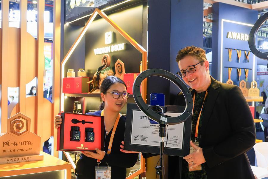 This photo taken on Nov. 3, 2025 shows a themed-decoration of the China International Import Expo (CIIE) at the National Exhibition and Convention Center (Shanghai) in east China's Shanghai. (Xinhua/Fang Zhe)Staff members perform at the pavilion of the United Arab Emirates during the eighth China International Import Expo (CIIE) in east China's Shanghai, Nov. 7, 2025. (Xinhua/Ren Pengfei)This photo shows a yoga event for one hundred participants organized by Lululemon outside the Consumer Goods Exhibition area during the eighth China International Import Expo (CIIE) in east China's Shanghai, Nov. 8, 2025. (Xinhua/Du Xinyi)Visitors view Tesla's Cybercab, which made its Asia-Pacific debut during the eighth China International Import Expo (CIIE) in east China's Shanghai, Nov. 6, 2025. (Xinhua/Fang Zhe)Visitors line up to taste Iberian ham from Spain at the Food and Agricultural Products exhibition area during the eighth China International Import Expo (CIIE) in east China's Shanghai, on Nov. 7, 2025. (Xinhua/Tian Weiwei)Exhibitors conduct a live streaming event at the booth of a New Zealand honey brand at the Food and Agricultural Products exhibition area during the eighth China International Import Expo (CIIE) in east China's Shanghai, on Nov. 6, 2025. (Xinhua/Liu Jiaqi)