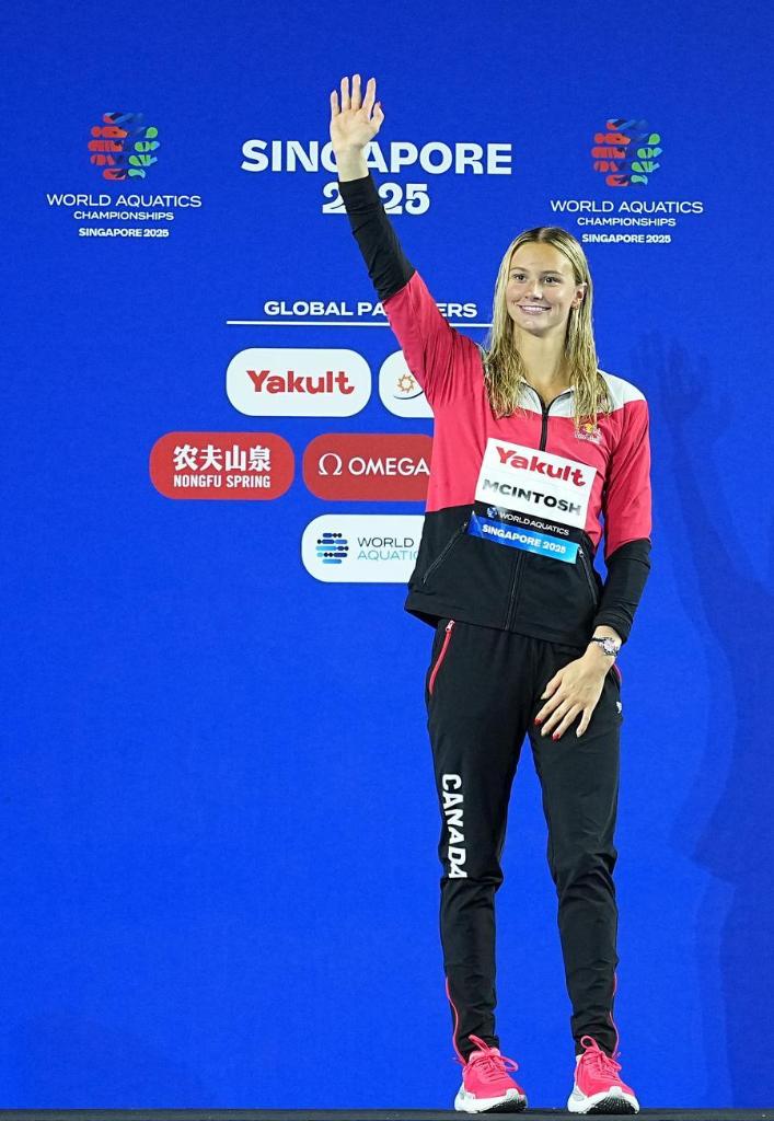 McIntosh broke world records in the women's 400m freestyle, 200m individual medley and 400m individual medley at Canada's national trials in June. At the World Aquatics Championships in Singapore, McIntosh dominated by claiming golds in the women's 400m freestyle, 200m individual medley, 400m individual medley and 200m butterfly events.